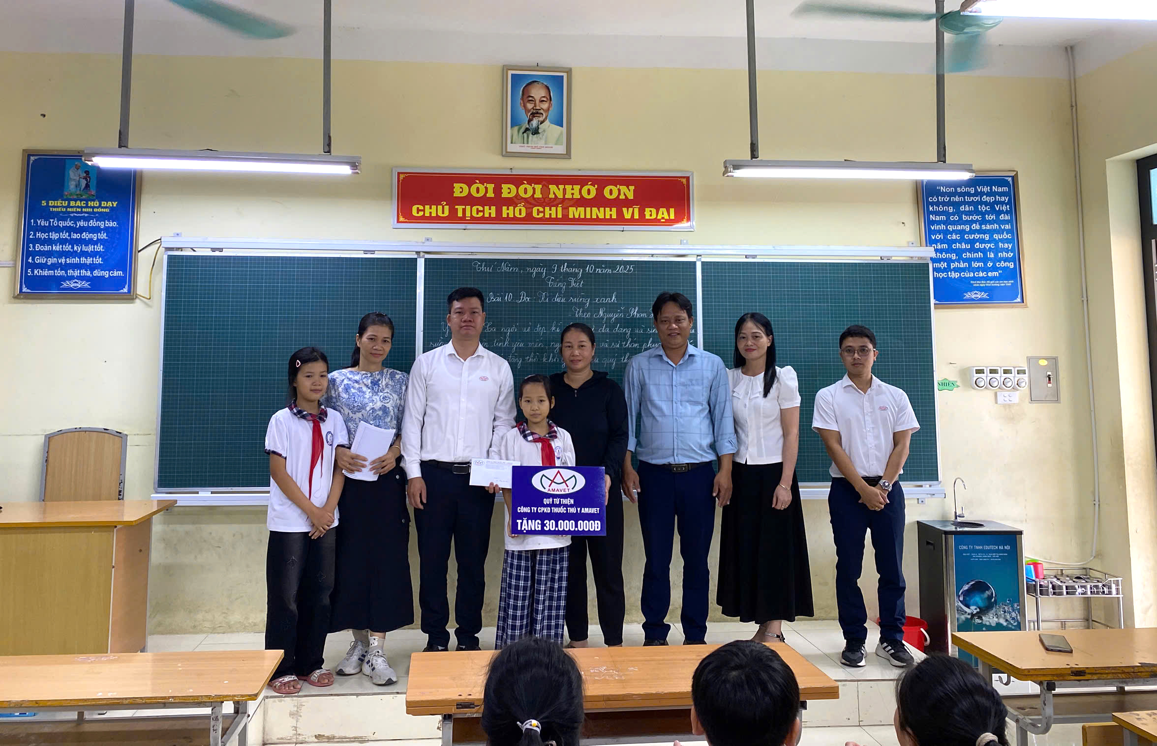 Hiểu được hoàn cảnh đó, đại diện Amavet và Đại lý Đại Yến đã trực tiếp đến lớp học của em Huệ để trao tặng số tiền 30.000.000 đồng, hỗ trợ một phần chi phí điều trị bệnh. Buổi trao quà có sự chứng kiến của cô Ngần – Tổng phụ trách Chi ủy nhà trường, thầy Hùng – giáo viên chủ nhiệm lớp 5B, cùng mẹ và bạn bè của em Huệ.