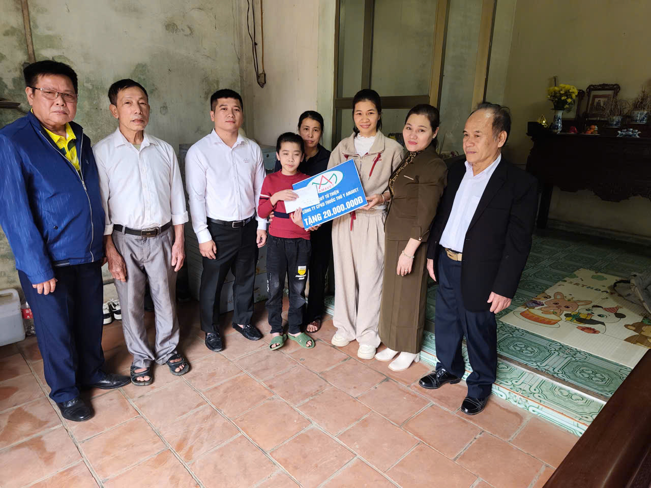 Nỗi đau mất cha chưa kịp nguôi ngoai thì gánh nặng viện phí và cuộc sống càng trở nên chồng chất khi bố là trụ cột kinh tế của gia đình đã mất. Mẹ em không có nghề nghiệp ổn định và hiện đang trực tiếp túc trực chăm sóc em tại bệnh viện. Thấu hiểu những khó khăn đó, đại diện Amavet đã đến tận nơi thăm hỏi, chia sẻ và trao khoản hỗ trợ 20 triệu đồng nhằm góp phần giảm bớt phần nào gánh nặng chi phí, đồng thời tiếp thêm động lực để em Tùng kiên cường điều trị và sớm hồi phục sức khỏe.