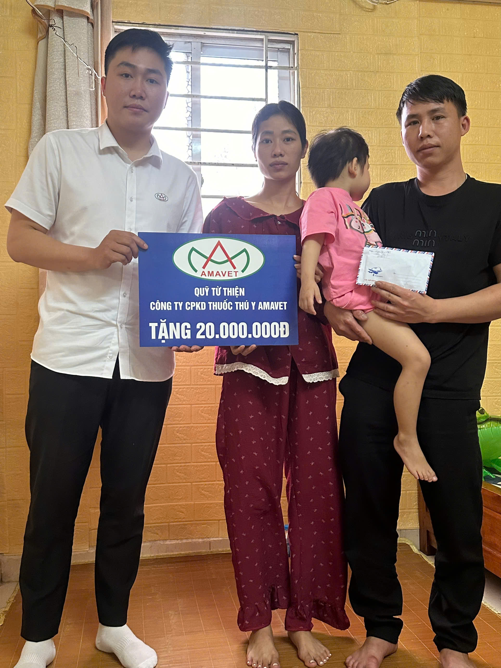 Gia đình cháu thuộc diện lao động tự do, điều kiện kinh tế khó khăn, trong khi chi phí điều trị bệnh ngày càng lớn, kéo dài khiến cuộc sống gia đình rơi vào tình trạng rất chật vật. Trước hoàn cảnh đó, đại diện Quỹ từ thiện của Công ty CP Kinh doanh Thuốc Thú y Amavet đã trực tiếp đến thăm hỏi, động viên và trao tặng số tiền hỗ trợ 20.000.000 đồng nhằm chia sẻ phần nào gánh nặng chi phí điều trị cho gia đình cháu.