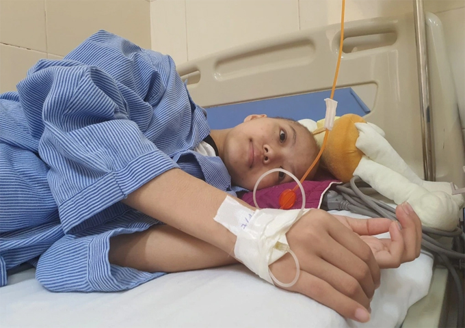 Hồng Thu được chẩn đoán mắc ung thư xương đùi trái, cháu cần được điều trị hóa chất 5 đợt, sau đó sẽ phẫu thuật.