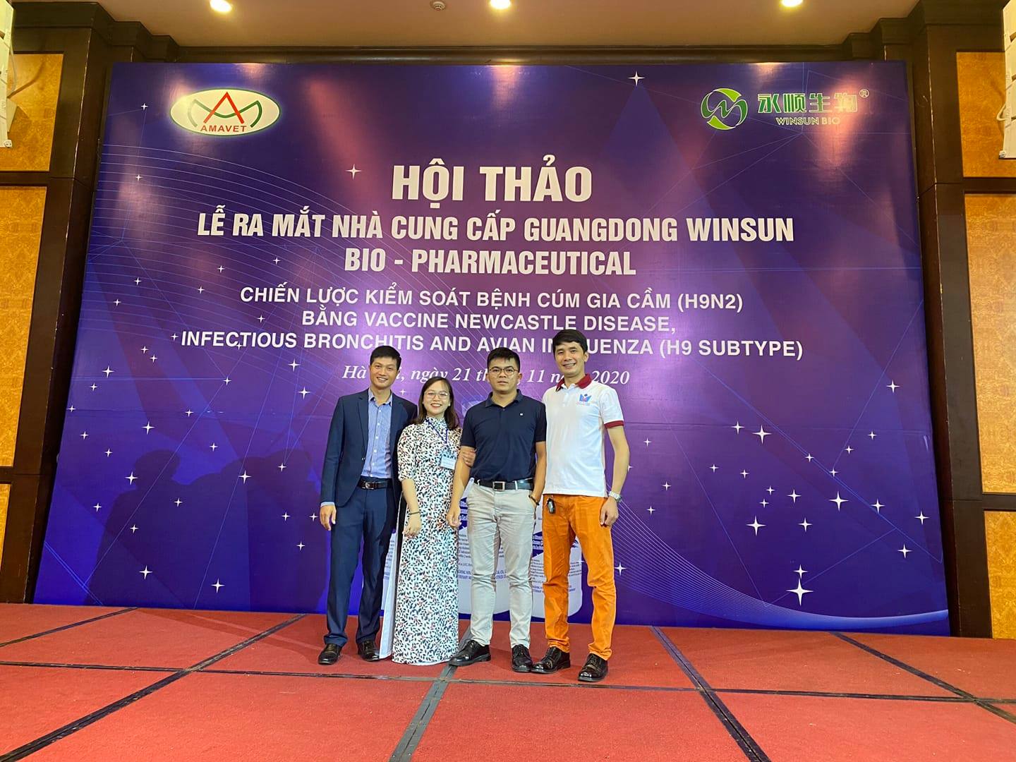 Ngày 21/11 vừa qua, công ty CP kinh doanh thuốc thú y Amavet tổ chức buổi hội thảo “Lễ ra mắt nhà cung cấp Guangdong Winsun Bio Pharmaceutical”. Chiến lược kiểm soát bệnh Cúm gia cầm H9N2 bằng vacxin ND-IB-H9 newcastle disease, infectious bronchitis and avian influenza h9 subtype.