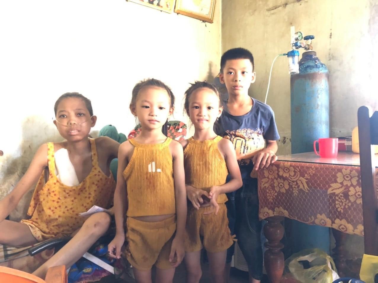 Chị còn 3 con nhỏ, cháu lớn mới học lớp 3, 2 cháu nhỏ sinh đôi đang học mầm non, mẹ chồng già yếu, chỉ duy nhất chồng chị là lao động chính mà cũng phải 24/24 túc trực bên vợ để chăm sóc nên đã khó khăn lại càng khó khăn hơn.