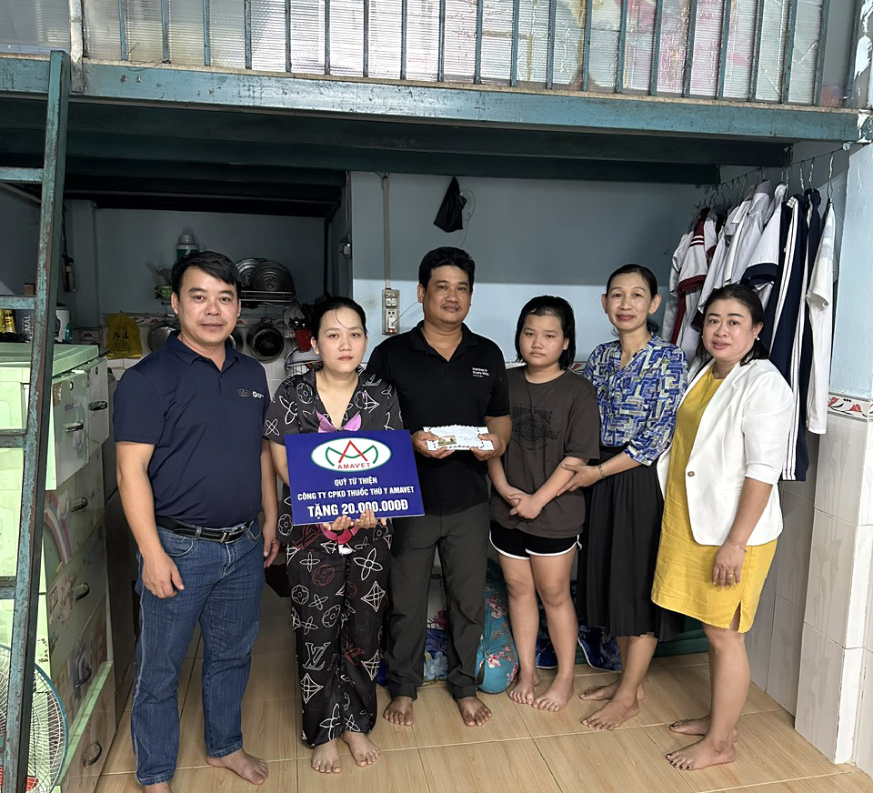 Nhận được thông tin và hoàn cảnh của cháu, ngày 25/11 diện Công ty Amavet, anh Trần Văn Cường - Chi nhánh Bình Dương cùng hiệu trưởng trường THCS Trung Mỹ Tây 1 đã đến đến thăm hỏi và trao quà cháu Trang tại phòng trọ ở ấp Vạn Hạnh, xã Trung Chánh, Hóc Môn với số tiền 20 triệu đồng.