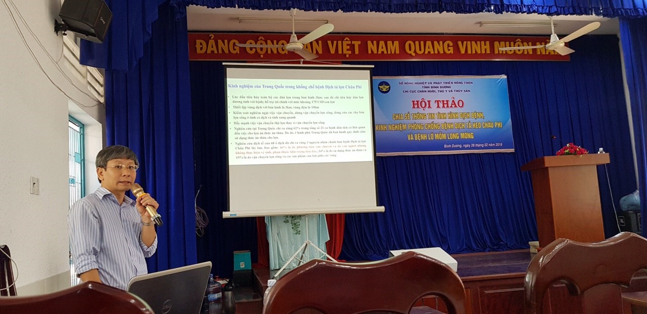 Ngày 28/2/2019, Chi cục Chăn nuôi, Thú y và Thủy sản tỉnh Bình Dương đã tổ chức buổi Hội thảo “chia sẻ thông tin tình hình dịch bệnh, kinh nghiệm phòng chống bệnh Dịch tả heo Châu Phi và Lở mồm long móng (LMLM)”.