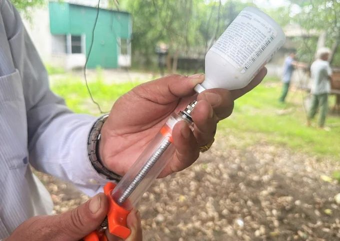 Hiện vacxin lở mồm long móng tiêm cho trâu, bò đang được Nhà nước hỗ trợ 100%. Ảnh: Thanh Nga.
