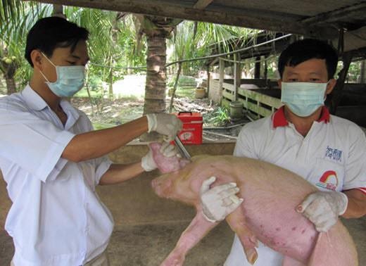 Bác sĩ thú y đang tiêm vắc xin cho lợn (Ảnh minh họa).